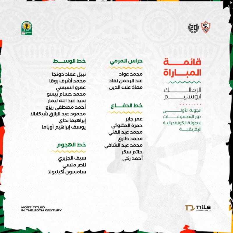 وأعلن معتمد جمال عن قائمة الفريق المواجهة غداً للفريق الليبي، في الجولة الأولى، استعداداً لحصد أول ثلاث نقاط في دور المجموعات.