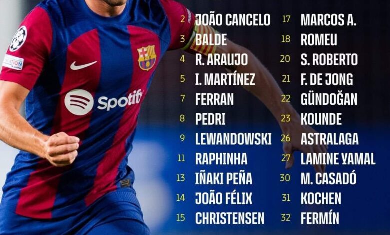 خط الهجوم: فيران توريس – جواو فيليكس – لامين يامال – ليفاندوفسكي – رافينيا.