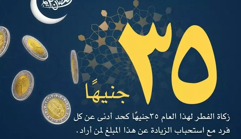 حددت دار الإفتاء المصرية قيمةَ زكاة الفطر لهذا العام [1447هـ- 2026م] بـ (35 جنيها) كحد أدنى عن كل فرد، موضحة أن تقدير قيمة زكاة الفطر لهذا العام، جاء بالتنسيق مع مجمع البحوث الإسلامية بالأزهر الشريف.