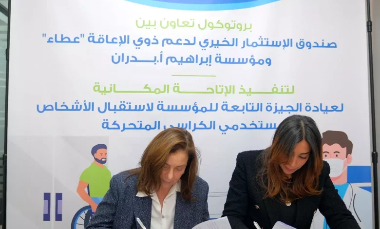 في خطوة تعكس التزاما مشتركا بتعزيز حقوق الأشخاص ذوي الإعاقة، وتمكينهم من الحصول على خدمات صحية عادلة وشاملة، وقع صندوق الاستثمار الخيري لدعم ذوي الإعاقة “عطاء” بروتوكول تعاون مع مؤسسة إبراهيم أ. بدران الخيرية، بهدف تأهيل عياداتها المجتمعية وفق معايير الإتاحة، لتقديم خدمات الرعاية الطبية المتكاملة للأشخاص ذوي الإعاقة الحركية من مستخدمي الكراسي المتحركة.