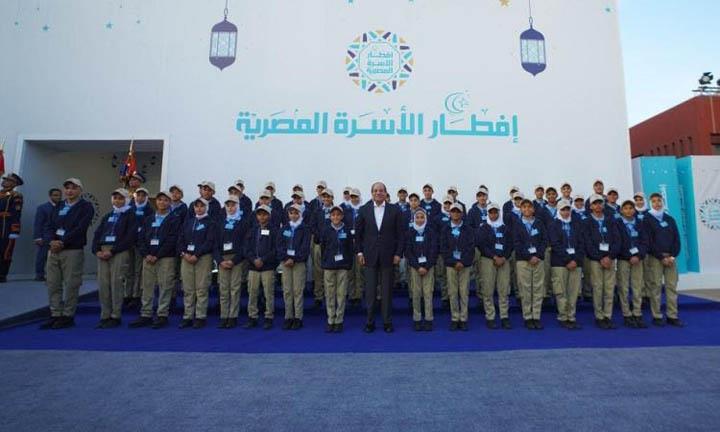 السيسي يلتقط صورًا تذكارية مع أطفال مدينة الأسمرات