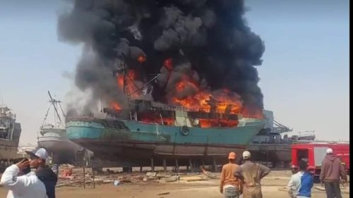 حريق هائل يلتهم عددا من السفن بميناء الأتكة في محافظة السويس